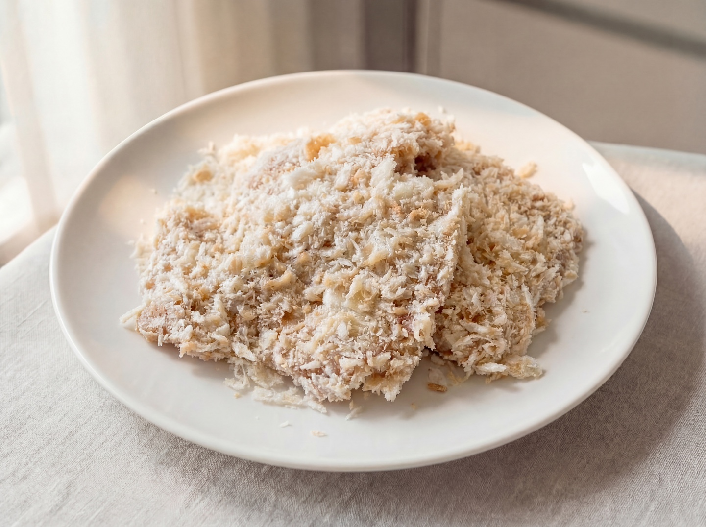 원료명 및 함량 : [냉동] 돼지등심60%, 빵가루20%, 계란14%, 밀가루3.5%, 소금, 후춧가루
